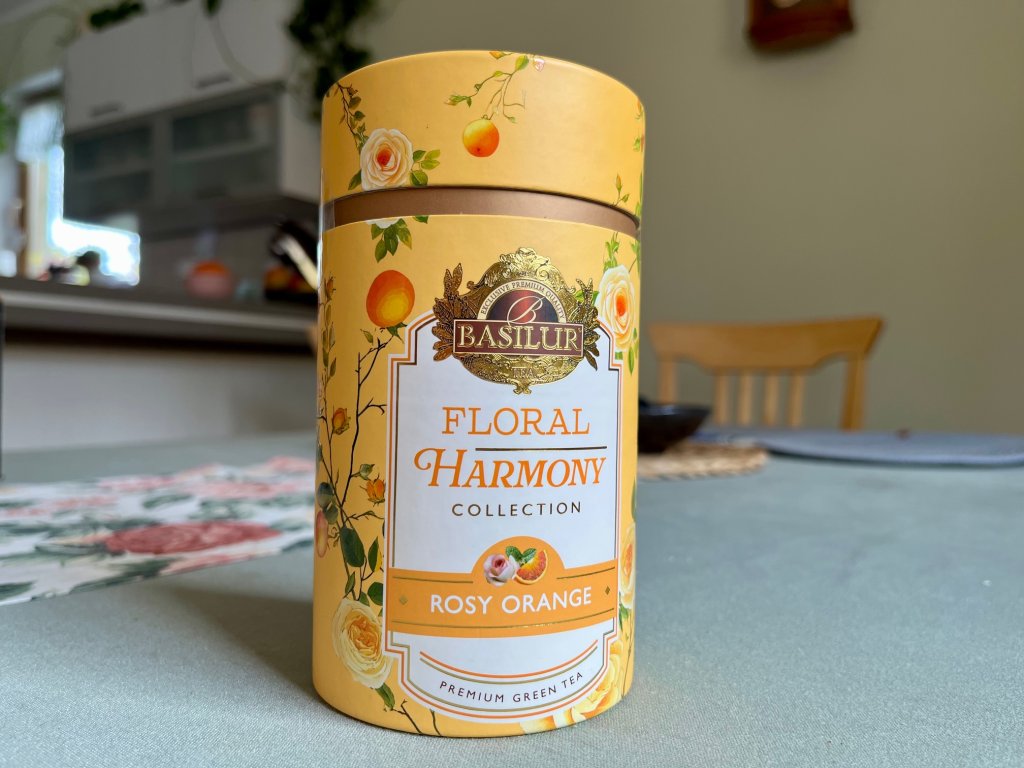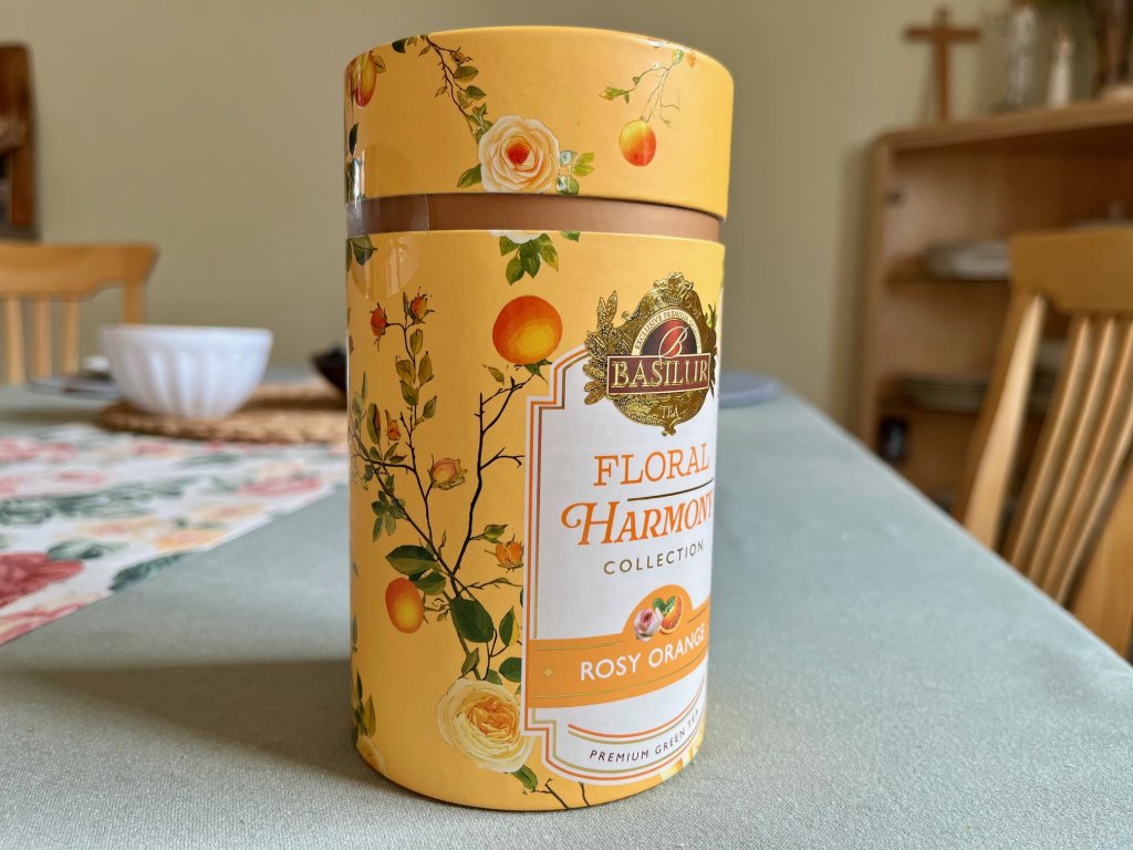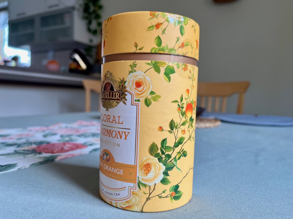 Složení: zelený čaj 67,6 %, ibišek květ 15 %, máta list 6 %, růže květ 1 %, chrpa květ 0,4 %, aroma (sicilský pomeranč), přírodní aroma (růže)