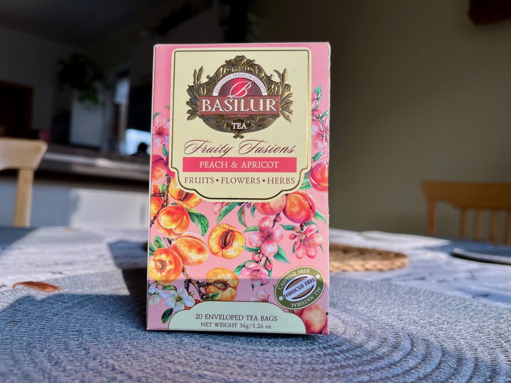 Ovocný čaj bez ibišku, aromatizovaný, porcovaný 20x1,8gSložení: jablko plod 57 %, šípek plod 16,5 %, pomeranč plod 12 %, stévie list 4 %, přírodní aroma (broskev, meruňka, kyselina citronová, kyselina jablečná)Hmotnost: 36gNávod na přípravu: 1 sáček / čajovou lžičku na 250ml šálek, zalít vodou 100°C, louhovat 5-7 minutyVýrobce: Basilur Tea Export (PVT) LTD. Baleno na Srí Lance.Dovozce pro ČR: MIX-TEE velkoobchod, s.r.o., Masarykova 235, 250 88 Čelákovice, Česká republikaSkladovat v suchu a chladu.