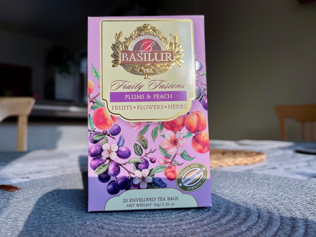 Ovocný čaj bez ibišku, aromatizovaný, porcovaný 20x1,8gSložení: jablko plod 43 %, šípek plod 15 %, pomeranč plod 12 %, citron list 10,5 %, stévie list 6 %, přírodní aroma (broskev, švestka, kyselina jablečná, kyselina citronová)Hmotnost: 36gNávod na přípravu: 1 sáček / čajovou lžičku na 250ml šálek, zalít vodou 100°C, louhovat 5-7 minutyVýrobce: Basilur Tea Export (PVT) LTD. Baleno na Srí Lance.Dovozce pro ČR: MIX-TEE velkoobchod, s.r.o., Masarykova 235, 250 88 Čelákovice, Česká republikaSkladovat v suchu a chladu.