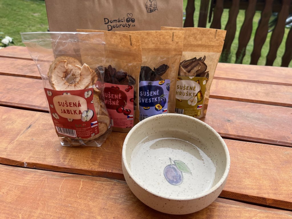 Naše sušené ovoce je rovněž originální a nezaměnitelné, protože je sušíme organickým způsobem, bez chemie a cukru. Každý rok je ovoce originální a jiné. Naším šetrným sušením si zachová svoji chuť a vůně.