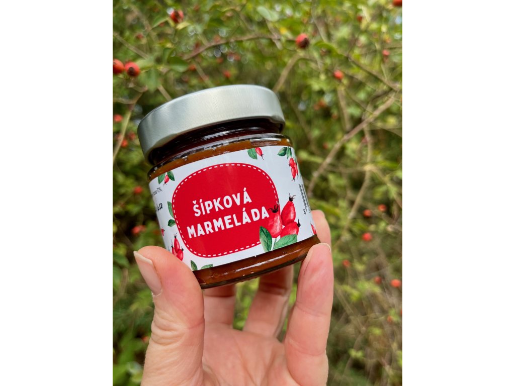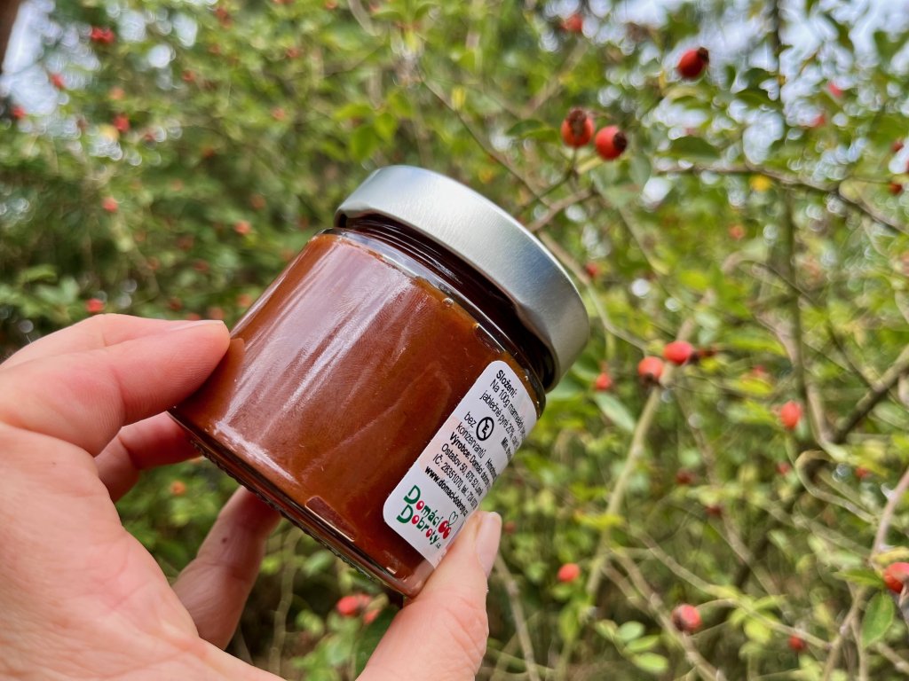 Složení: šípky ČR, cukr, želírující látky (pektin), jablečný rozvar. Na 100 g výrobku bylo použito šípkový rozvar 70%, jablečné pyré 20%, cukr 9%, pektin 1%Výrobce: Domácí dobroty s.r.o., Ostašov 50, 67552Trvanlivost: 3 roky