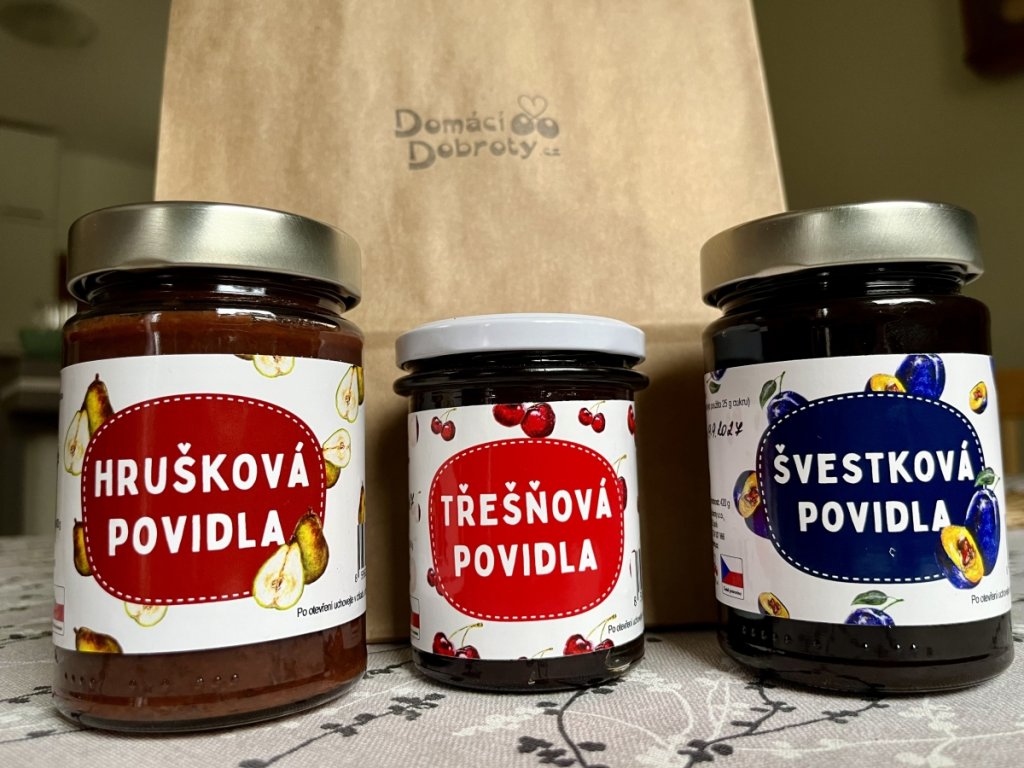 Do tašky jsme si pro Vás připravili 5 příchutí našich skvělých povidel. Povidla jsou naší chloubou. Umíme je uvařit pomale a bez čehokoliv, aby byla chutná a kvalitní. Vybíráme si již u odrůdy ovoce, které se k vaření povidel hodí. Lze je použít na lívance, do buchet, na palačinky, na koláče nebo jen na lžičku.