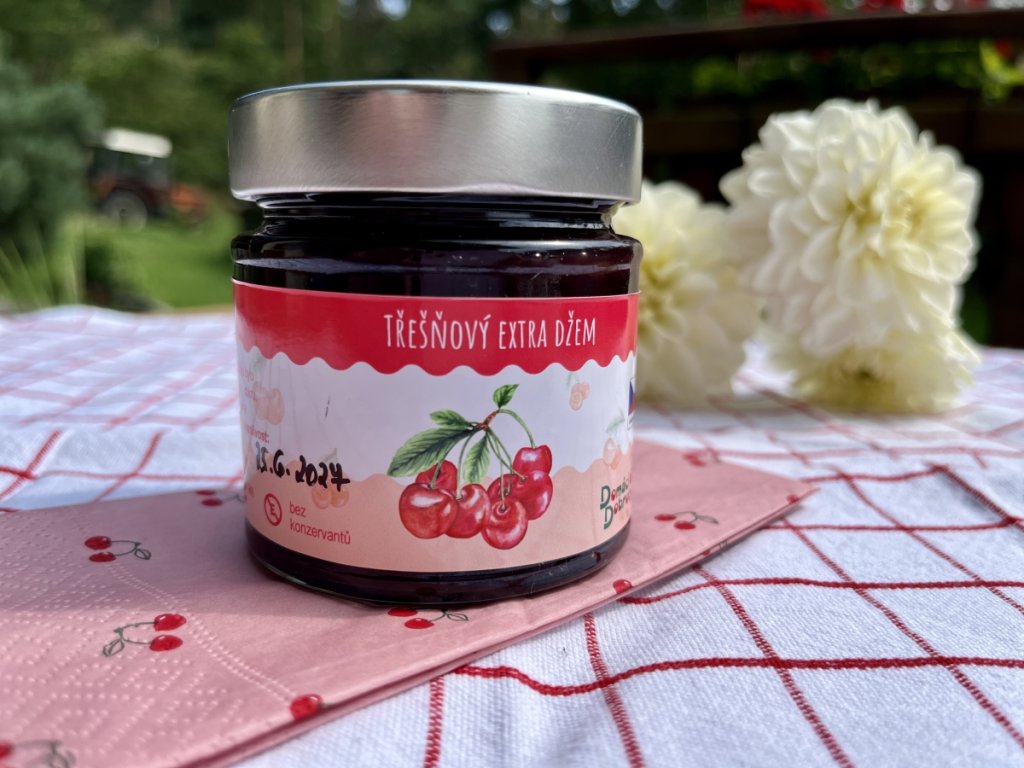 Třešňový extra džem máme v naší nabídce nově. Je vyroben z krásných přezrálých třešní, takže jeho barva je téměř černá. Třešně jsme vypeckovali a přepasírovali, džem tedy neobsahuje kousky, je krásně hladký a bude vhodný ke slepování cukroví např. lineckého. Pokud plníte koblihy až po usmažení plnícím sáčkem, i zde využijete náš třešňový džem. Kreativitě se meze nekladou, takže je na Vás, jak ho využijete.