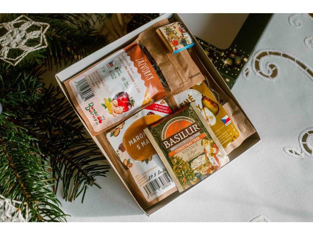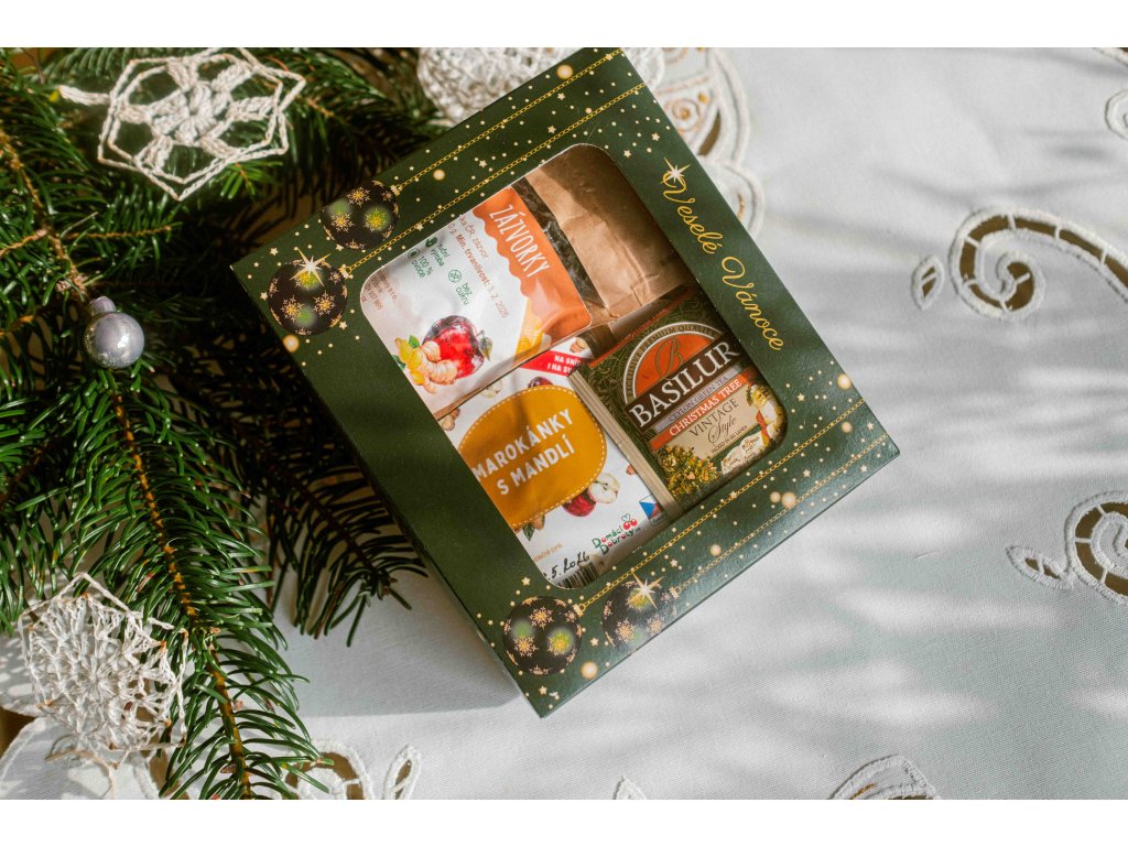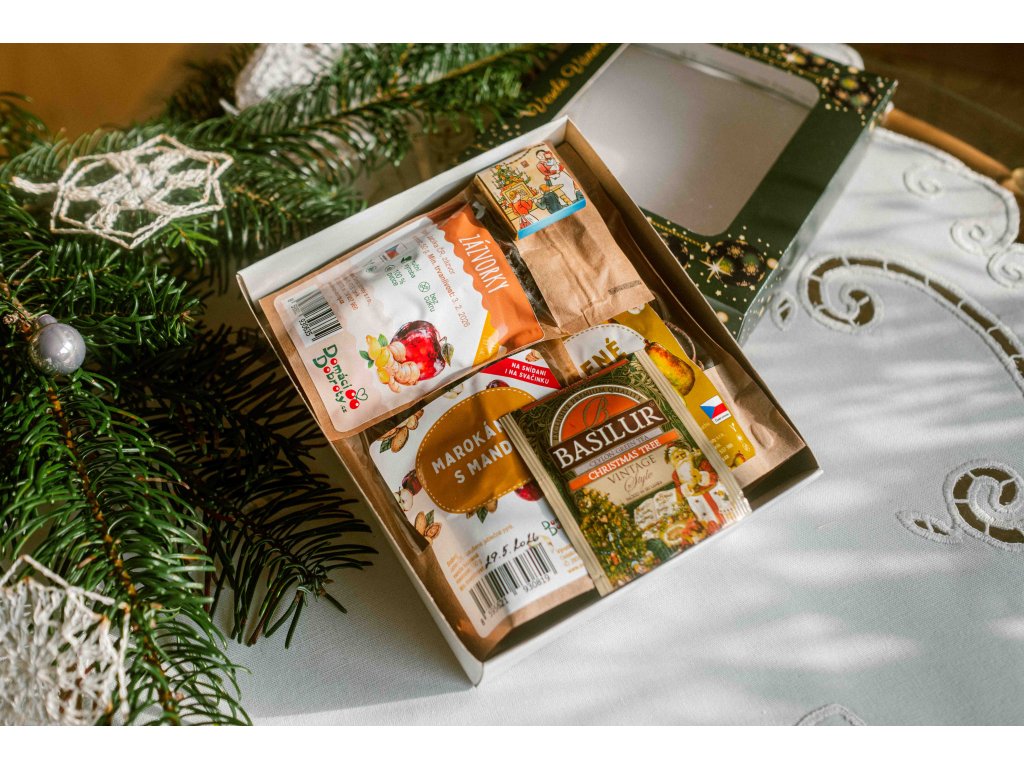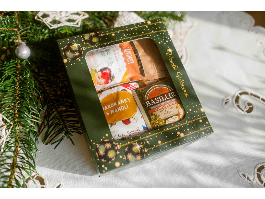 V krásné zelené krabičce najdete hned několik dobrot od fy Domácí dobroty. Můžete si k nim uvařit šálek lahodného čaje a spolu s čokoládou od fy CARLA tak zažijete pravou českou atmosféru Vánoc.